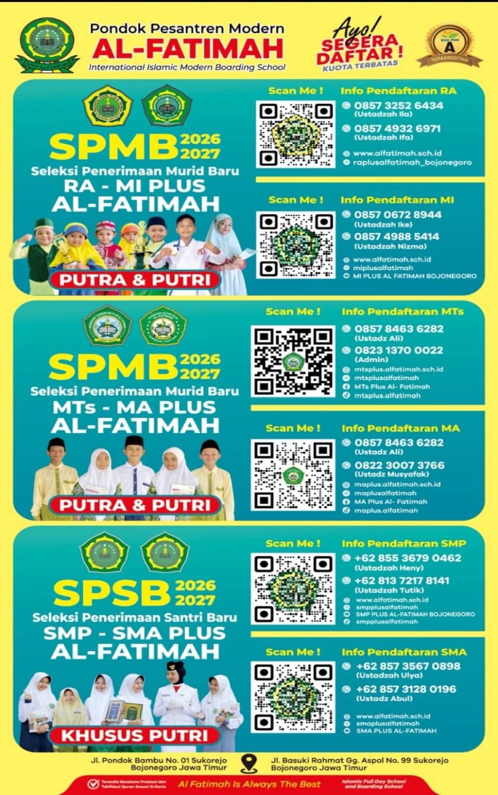 Buka Pendaftaran MI, MTs, MA, dan IAI, Al Fatimah Cetak Generasi Unggul
