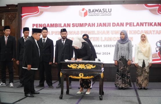 INDOSatu.co – LAMONGAN – Menjelang pemilihan kepada daerah (pilkada) serentak 27 November 2024, sebanyak 81 panitia pengawas pemilihan umum (Panwaslu) kecamatan se-Kabupaten Lamongan tahun 2024 dilantik di Pendopo Lokatantra Kabupaten Lamongan, Jumat (24/5).