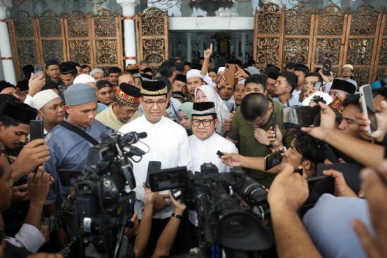 INDOSatu.co – ACEH – Eks Capres Anies Baswedan dan eks Cawapres yang juga Ketua Umum DPP PKB, Abdul Muhaimin Iskandar (AMIN) mengunjungi Provinsi Aceh. Mereka melakukan silaturrahim dengan masyarakat Aceh di Masjid Baiturrahman, Banda Aceh, Provinsi Aceh, Jumat (3/5).