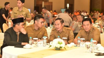 Bupati Lamongan Yuhronur Efendi dan kepala daerah di Jawa Timur tampak hadir dalam Rapat Koordinasi Penanganan Dampak Hidrometeorologi dan Potensi Bencana Musim Kemarau Jawa Timur Tahun 2026 yang digelar di Dyandra Convention Center, Selasa (7/4) tersebut.