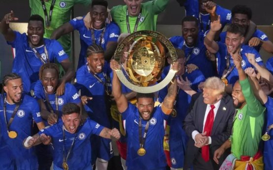 Presiden Donald Trump menghadiri final sebagai tamu Presiden FIFA Gianni Infantino. Trump menyerahkan trofi kepada Chelsea dan tetap di atas panggung untuk merayakan kemenangan bersama klub. (*)