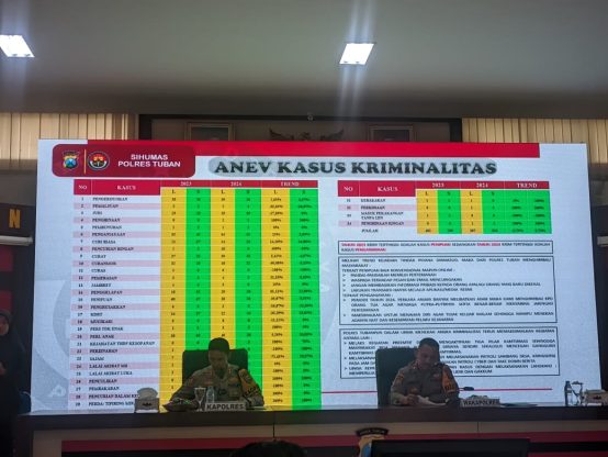 INDOSatu.co – TUBAN – Polres Tuban menggelar rilis akhir tahun Selasa (31/12), yang diikuti Satuan Lalu-lintas, Reskrim, dan Reskoba. Korps baju cokelat itu menyampaikan hasil kinerja selama 2024.