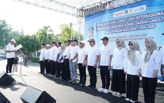 “Pemerintah Kabupaten Lamongan memberikan ruang luas untuk lansia agar terus berdaya. Capaian ragam program untuk memberdayakan lansia di Lamongan dapat dilihat dari angka harapan hidup,” tutur Bupati Lamongan Yuhronur Efendi usai mengukuhkan Komisi Daerah Lansia (Komda Lansia) Kabupaten Lamongan periode 2025-2030 di Alun-Alun Kabupaten Lamongan, Jumat (12/12) pagi.