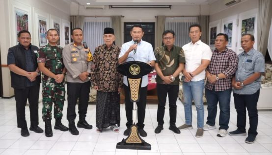 INDOSatu.co – LAMONGAN – Bupati Lamongan Yuhronur Efendi bersama jajaran Forkopimda Lamongan, hingga Pimpinan Pondok Pesantren Sunan Drajat Abdul Ghofur mengajak seluruh elemen masyarakat untuk menjaga kondusivitas Lamongan, Ahad (31/8) malam.