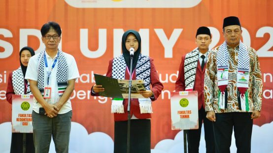 INDOSatu.co – YOGYAKARTA – Dukungan terhadap kemerdekaan Palestina terus digaungkan oleh Universitas Muhammadiyah Yogyakarta (UMY). Kali ini disuarakan melalui pernyataan sikap terbuka dari 5.377 mahasiswa baru (Maba) saat mengikuti agenda Orientasi Studi Dasar Islam (OSDI) di gedung Sportorium UMY, pada Kamis (26/9).