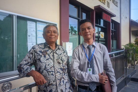 HORMATI HUKUM: Supriyadi (kiri), kuasa hukum Kades Mentoso yang dillaporkan pengelola pengurus Pokdarwis, penglola Wisata Pantai Sumur Pawon dalam kasus pencemaran nama baik.