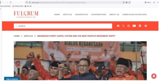 Dengan judul tulisan Indonesia’s Party Cartel System and the New ‘People’s Movement Party’ (Sistem Kartel Partai Indonesia dan Partai Baru Partai Gerakan Rakyat), Max Lane, akademisi Visiting Senior Fellow di ISEAS – Yusof Ishak Institute menyoroti bagaimana partai ini berpotensi besar menjadi kekuatan politik signifikan jika berhasil lolos dalam pemilihan umum mendatang.