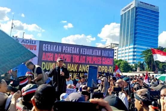 “Kita meminta pertanggung jawaban Jokowi yang menyebabkan kemerosotan Indonesia di berbagai bidang, khususnya demokrasi dan hak asasi,” tegas Din Syamsuddin, mantan Ketua Umum PP Muhammadiyah dan Ketua Majelis Ulama Indonesia (MUI) serta guru besar politik Islam.