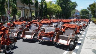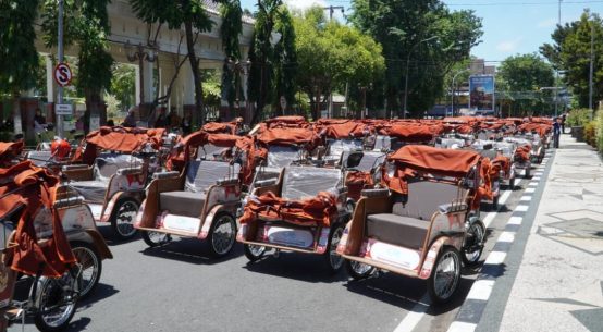 Dua Ratus Pengemudi Becak Lamongan Terima Bantuan Becak Listrik