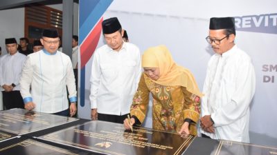 INDOSatu.co – LAMONGAN – Bupati Lamongan Yuhronur Efendi bersama Gubernur Jawa Timur Khofifah Indar Parawansa menghadiri peresmian revitalisasi, rehabilitasi, dan pembangunan sarana prasarana SMA, SMK, dan SLB (negeri/swasta) se-wilayah Lamongan dan Gresik, di SMAN 2 Lamongan, Rabu (4/3).