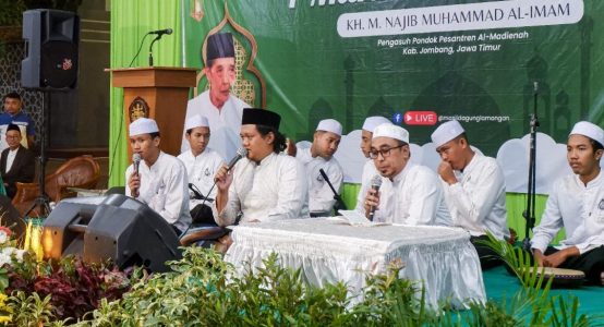 Untuk memperdalam keilmuan pada peringatan Tahun Baru Islam 1446 H, jamaah yang hadir mendapatkan tausiyah dari Pengasuh Pondok Pesantren (Ponpes) Al-Madienah, Jombang, Kyai M. Najib Muhammad Al-Imam alias Gus Najib. (*)