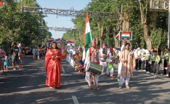 Sementara itu, untuk Indonesia juga menampilkan kebudayaan lokal seperti Tari Thengul sebanyak 50 penari, Oklik sebanyak 50 peserta, Seni Barongsai sebanyak 30 peserta, Reog Jaranan sebanyak 50 peserta, serta Sandur dan Terbang Jidor sebanyak 50 orang. Sebanyak 200 siswa sekolah juga turut meramaikan parade sambil membawa bendera.