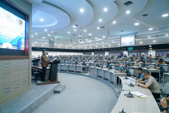 APRESIASI PARA PRESIDEN: Ketua MPR RI, Bambang Soesatyo saat memberi kuliah umum kepada Pasis Dikreg Seskoal Angkatan ke-61 Tahun 2023, di Kelas A, Gedung RE Martadinata, Seskoal, Jakarta, Rabu (10/5).