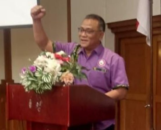INDONESIA NAN ELOK: Ketua Umum FSP Parekraf KSPSI, Jumhur Hidayat saat menyampaikan sambutan saat peringatan HUT ke-1 Federasi Serikat Pekerja Pariwisata dan Ekonomi Kreatif (Parekraf) KSPSI di Hotel Grand Kemang Jakarta (31/3).