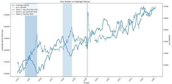 Sepanjang periode 2014–2025 Indonesia setidaknya telah mengalami tiga episode tekanan serius terhadap rupiah (stress mode). Dalam kondisi yang lebih buruk, tekanan terhadap rupiah tersebut sangat mungkin berubah menjadi krisis valuta.