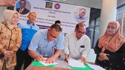 INDOSatu.co – JAKARTA – Upaya Ketua Umum DPP KSPSI Moh. Jumhur Hidayat dan Ketua Koperasi Warga Jakarta Raya Sejahtera (KOWAJA) Biem Benjamin patut diapresiasi. Betapa tidak, untuk meningkatkan kesejahteraan pekerja, kedua organisasi itu membuat memorandum of understanding (MoU = nota kesepahaman).