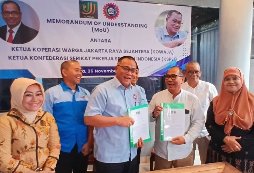 INDOSatu.co – JAKARTA – Upaya Ketua Umum DPP KSPSI Moh. Jumhur Hidayat dan Ketua Koperasi Warga Jakarta Raya Sejahtera (KOWAJA) Biem Benjamin patut diapresiasi. Betapa tidak, untuk meningkatkan kesejahteraan pekerja, kedua organisasi itu membuat memorandum of understanding (MoU = nota kesepahaman).