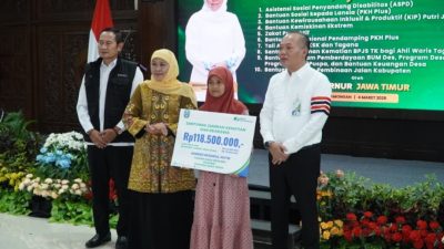 Selain itu, bantuan untuk tali asih bagi TKSK dan Tagana, santunan jaminan kematian BPJS tenaga kerja bagi ahli waris Tagana, bantuan program pemberdayaan BUMDes program desa berdaya program Jatim Puspa dan bantuan keuangan desa, serta bantuan program pembinaan jalan kabupaten.