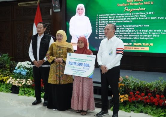 INDOSatu.co – LAMONGAN – Menjadi titik ke-9 pelaksanaan Sapa Bansos Amaliyah Ramadan 1447 Hijriyah Provinsi Jawa Timur, Kabupaten Lamongan menerima saluran bantuan dari Gubernur Khofifah Indar Parawansa sebesar Rp. 7,2 miliar. Bantuan tersebut diserahkan di Pendopo Lokatantra Lamongan, Rabu (4/3).