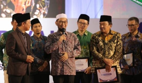 DEMI PENDIDIKAN: Ustad Adi Hidayat (berkopiah putih) saat menghadiri lanching Gerakan Infak Pendidikan yang dirangkai dalam Resepsi Puncak Milad ke-111 Muhammadiyah di Sportorium Universitas Muhammadiyah Yogyakarta.