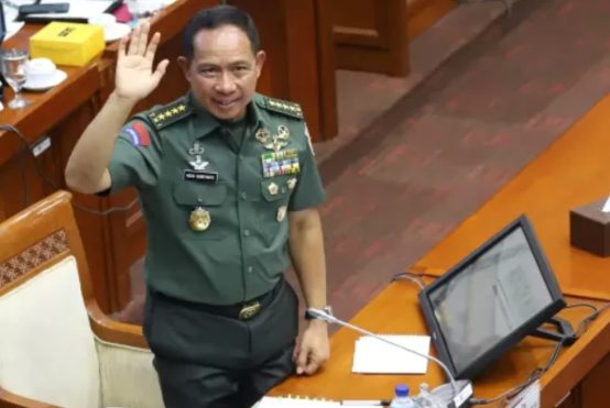 LAMBAIKAN TANGAN: Calon Panglima TNI Agus Subianto beranjak dari kursi tempatnya duduk usai secara musyarawah mufakat disetujui sebagai Panglima TNI saat rapat di ruang Komisi I DPR, Senayan, Jakarta.