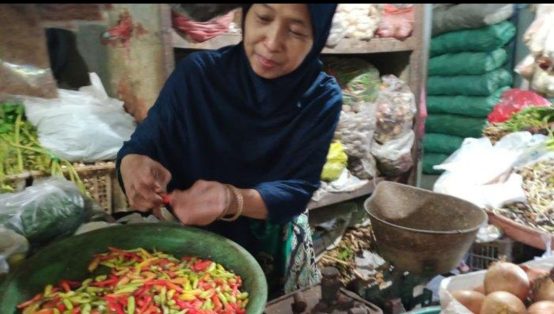 INDOSatu.co – LAMONGAN – Pasca Natal 2021 dan Tahun Baru 2022, di sejumlah pasar di Kabupaten Lamongan terjadi penurunan harga bahan pokok, salah satunya cabai rawit, Minggu (16/1).