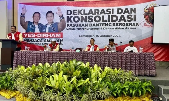 INDOSatu.co – LAMONGAN – Dukungan untuk paslon Yuhronur Efendi dan Dirham Akbar Aksara (Yes-Dirham) bertambah. Massa yang mengatasnamakan Pasukan Banteng Bergerak mendeklarasikan dukungannya untuk memenangkan paslon yang diusung 14 parpol tersebut dalam Pilkada Lamongan 2024.