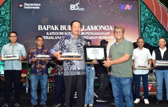 INDOSatu.co – LAMONGAN – Komitmen Pemkab Lamongan meningkatkan keselamatan di perlintasan sebidang diapresiasi dari PT. Kereta Api Indonesia (KAI) Persero. Penghargaan tersebut diberikan untuk kategori Kontribusi Pengamanan Perjalanan Kereta Api pada Perlintasan Sebidang, di Halaman Kantor DAOP 8 PT KAI Persero, Ahad (21/9).