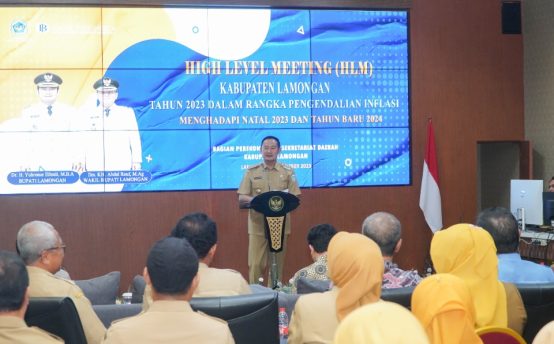 INDOSatu.co – LAMONGAN – Pemerintah Kabupaten Lamongan mempersiapkan strategi untuk mengendalikan inflasi menjelang Natal 2023 dan Tahun Baru 2024. Kegiatan tersebut dibahas dalam High Level Meeting (HLM) di ruang Command Center Pemkab Lantai 3, Selasa (5/12).