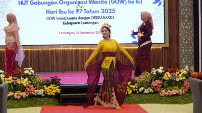INDOSatu.co – LAMONGAN – Gabungan Organisasi Wanita (GOW) Kabupaten Lamongan bekerja sama dengan Dewan Kerajinan Nasional Daerah (Dekranasda) Kabupaten Lamongan menggelar peringatan Hari Ibu ke 97, dengan tajuk estetika fashion show di Aula Gadjah Mada Gedung Lt. 7, Pemkab Lamongan, Selasa (23/12).