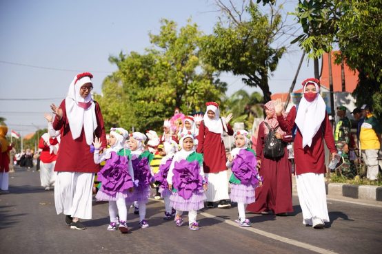 INDOSatu.co – TUBAN – Memperingati Hari Ulang Tahun (HUT) ke-79 Kemerdekaan RI, Pemkab Tuban menggelar berbagai kegiatan menarik, pada Senin (12/8) pagi, Kepala Dinas Pendidikan Tuban, Abdul Rakhmat memberangkatkan karnaval PAUD tingkat TPA (Tempat Penitipan Anak) dan KB (Kelompok Bermain) yang diikuti oleh 38 Lembaga TPA dan KB se-Kecamatan Tuban.
