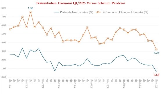 TIDAK AMAN: Grafik pertimbuhan ekonomi Q1/2025 yang menandakan pertumbuhan ekonomi Indonesia masih jauh dari harapan.