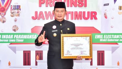 Penganuegerahan tersebut diserahkan langsung oleh Gubernur Jawa Timur Khofifah Indar Parawansa kepada Bupati Lamongan Yuhronur Efendi, pada upacara peringatan Hari Jadi ke-80 Provinsi Jawa Timur, di Gedung Negara Grahadi, Ahad (12/10).
