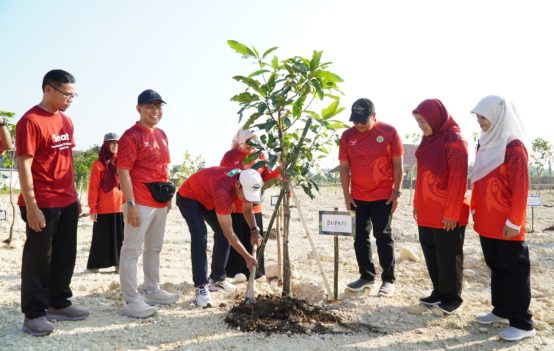 INDOSatu.co – LAMONGAN – Pemerintah Kabupaten Lamongan bersama Dewan Pengurus Daerah (DPD) Persatuan Perawat Nasional Indonesia (PPNI) Kabupaten Lamongan menanam 51 pohon jenis mangga, nangka, sukun, trembesi, dan angsana, di Kawasan Gajah Mada (Kagama) Lamongan dalam menyambut HUT PPNI ke-51, Jumat (4/7).