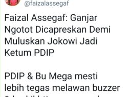 Ganjar, kata Faizal, ngotot dicapreskan demi memuluskan Jokowi menjadi Ketum PDIP. PDIP dan Bu Mega mesti tegas melawan buzzer & berikhtiar mencegah kudeta menjelang pilpres. Terlebih Jokowi makin liar dan tidak bisa dipercaya. (adi/red)