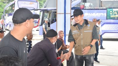 INDOSatu.co – LAMONGAN – Pemerintah Kabupaten Lamongan, Jawa Timur menggelar program balik gratis bagi para pemudik. Sebanyak 146 peserta diberangkatkan langsung oleh Bupati Lamongan Yuhronur Efendi, dari Stadion Surajaya Lamongan, Selasa (24/3).