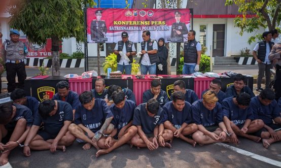 INDOSatu.co – TUBAN – Bertempat di Halaman Mapolres Tuban, didampingi Kasat Narkoba AKP. Harjo, SH., Kapolres Tuban AKBP Oscar Syamsudin, S.I.K, M.T., mengungkap 14 kasus penangkapan peredaran narkoba di wilayah Kabupaten Tuban, Rabu (13/11).