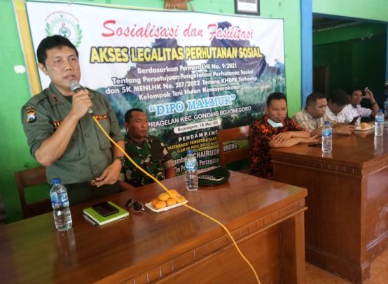 INDOSatu.co – BOJONEGORO – Sosialisasi Perhutanan Sosial (PS) yang dilakukan Lembaga Swadaya Masyarakat Pemberdayaan Kinerja Peduli Aset Negara (LSM PK PAN) Bojonegoro terhadap Kelompok Tani Hutan Dipo Makmur, Desa Pragelan, Kecamatan Gondang, Bojonegoro, pada hari ini, Rabu (18/5), sudah tepat, yakni Pokja Tim Penggerak Percepatan Pengelolaan Perhutanan Sosial (TP3PS) KLHK.