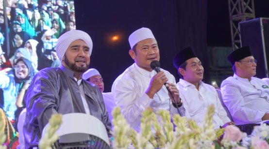 INDOSatu.co – LAMONGAN – Pemerintah Kabupaten (Pemkab) Lamongan menggelar shalawat bersama Habib Syech Bin Abdul Qadir Assegaf, di Stadion Surajaya Lamongan, Kamis (8/12). Shalawat bersama digelar dalam rangka mengajak masyarakat mencari keberkahan untuk menuju kejayaan Lamongan yang berkedilan serta mewujudkan daerah yang bertajuk religi.